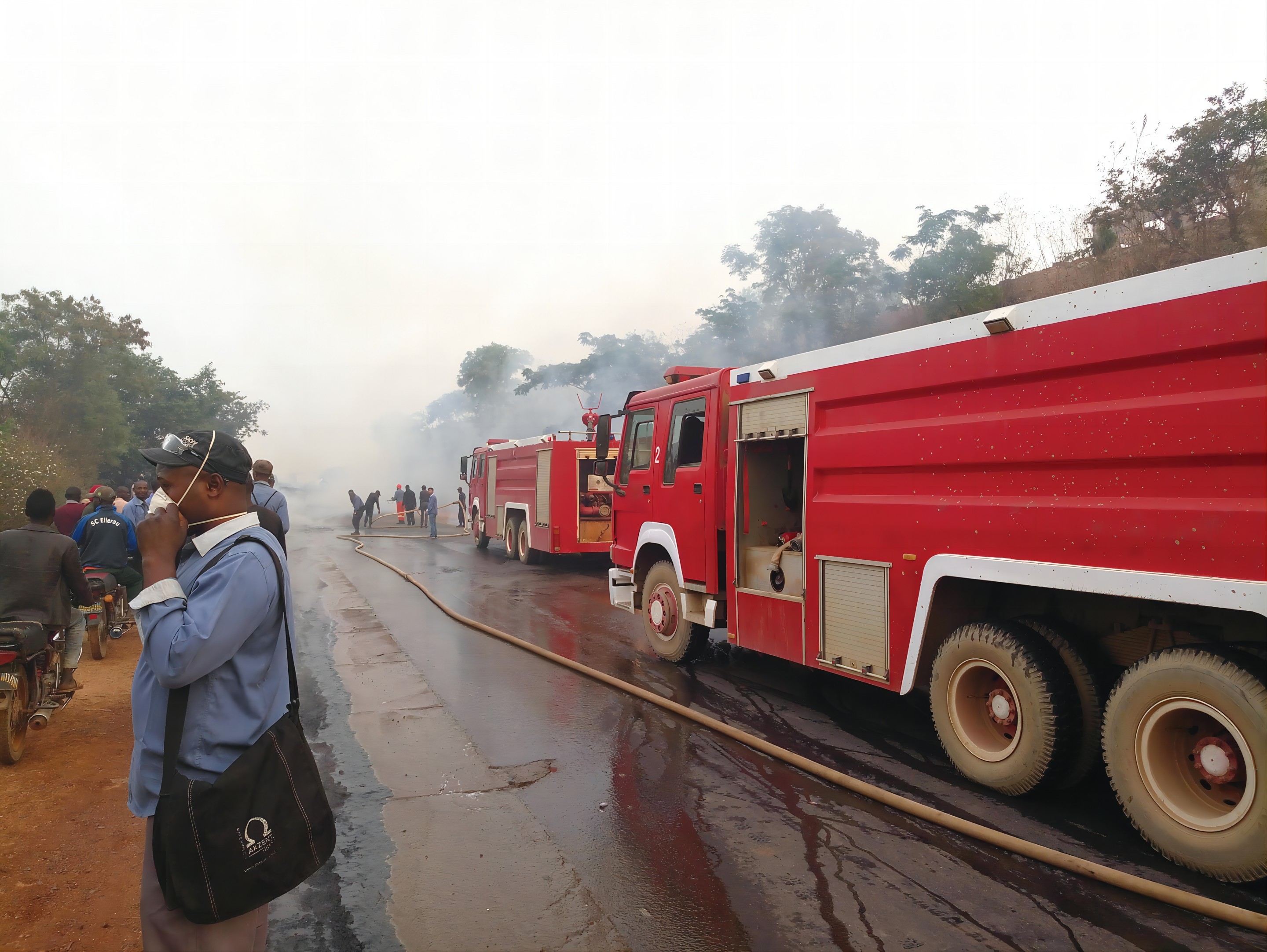 刚果金火灾求援,SMCO消防队奔赴火情第一线