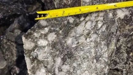 1050中段18线控制的VCR矿体 1050中段18线探获矿体的代表性矿石